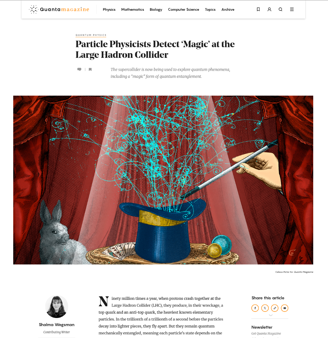 Shalma Wegsman, Particle Physicists Detect ‘Magic’ at the Large Hadron Collider, Quanta Magazine (2025)